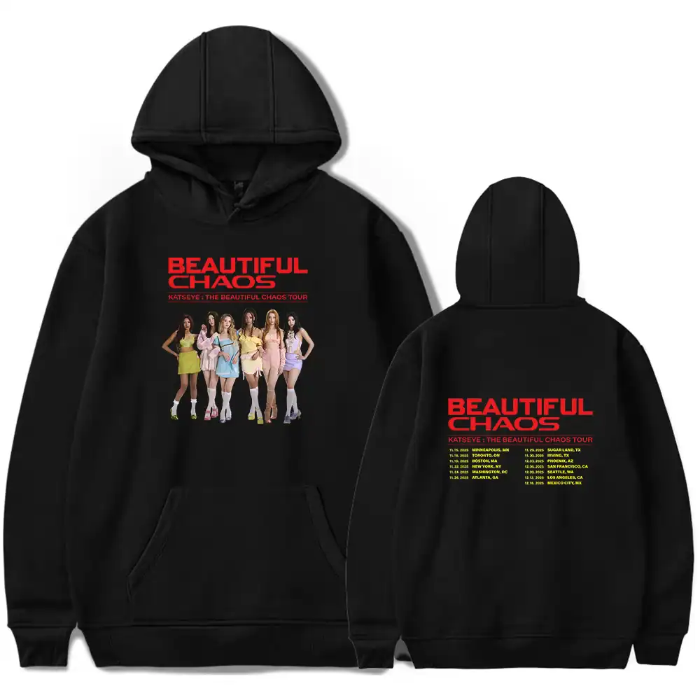 These “Beautiful Chaos” hoodies from KATSEYE capture the electric energy of the group’s second EP—bold, expressive, and full of contrast. They blend edgy graphics with soft fabrics, creating a wearable ode to their sonic duality. Whether layered on a cool evening or styled casually during the day, these hoodies carry the spirit of “beautiful chaos” in every seam.